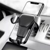 Nosso suporte Gravity vem com uma tecnologia de travamento por gravidade, ou seja, quando você encaixa seu celular empurrando a trava inferior para baixo, as travas laterais se fecham automaticamente.